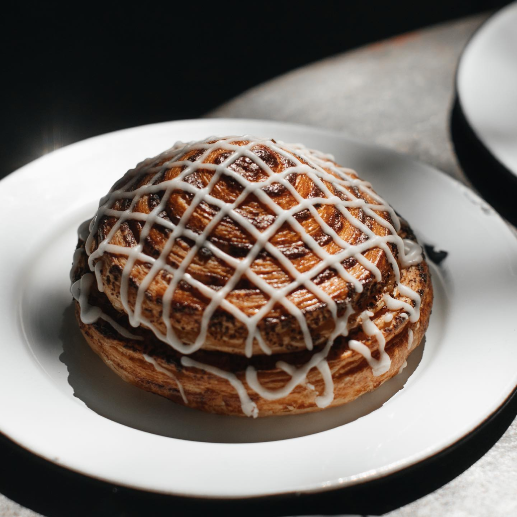 The ultimate comfort, refined. A soft, pillowy spiral of dough, aromatic cinnamon, and a whisper of sweetness—never overly indulgent.
