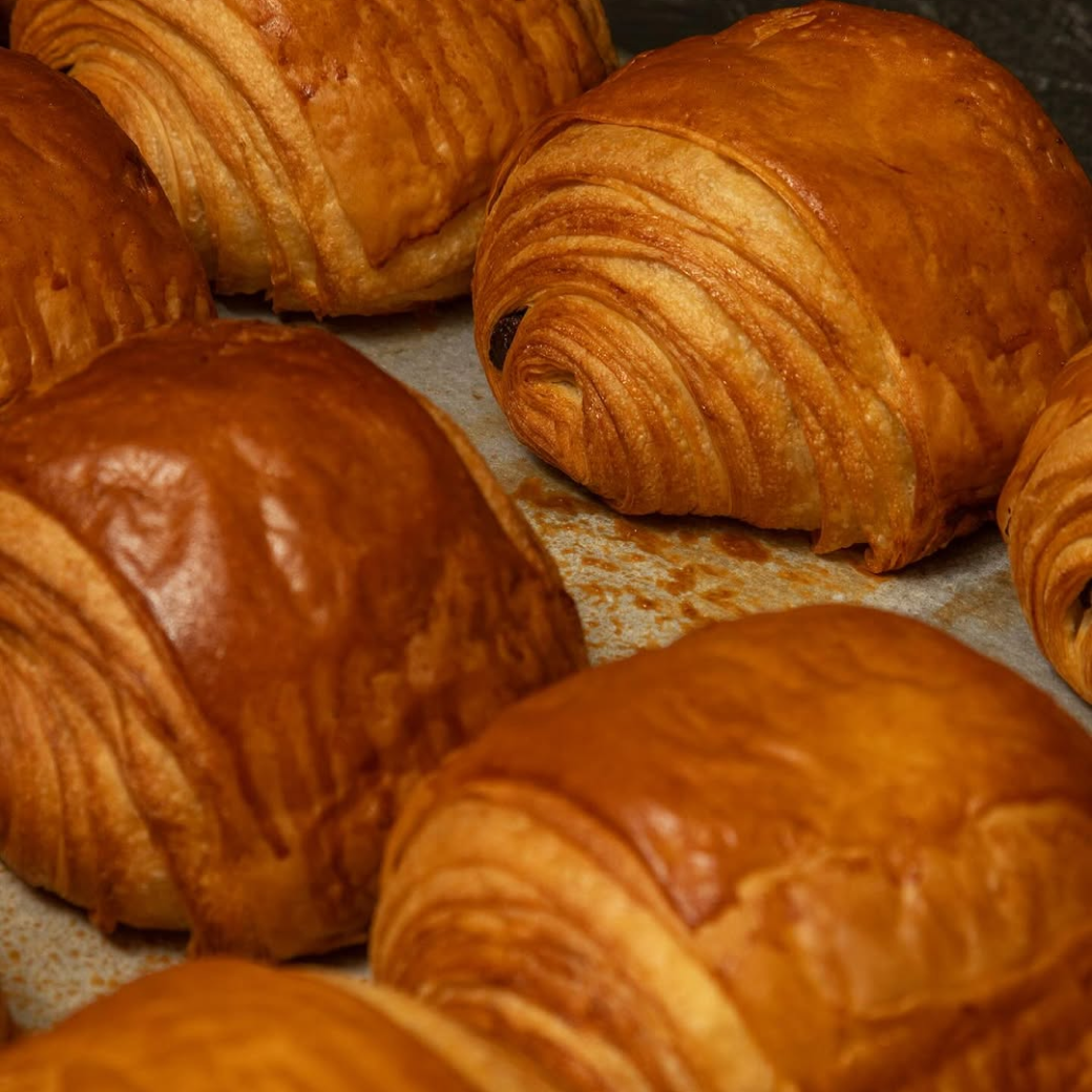 Una obra maestra de la simplicidad. Una masa hojaldrada y dorada da paso a un corazón de chocolate negro intenso: un comienzo delicioso para cualquier mañana.