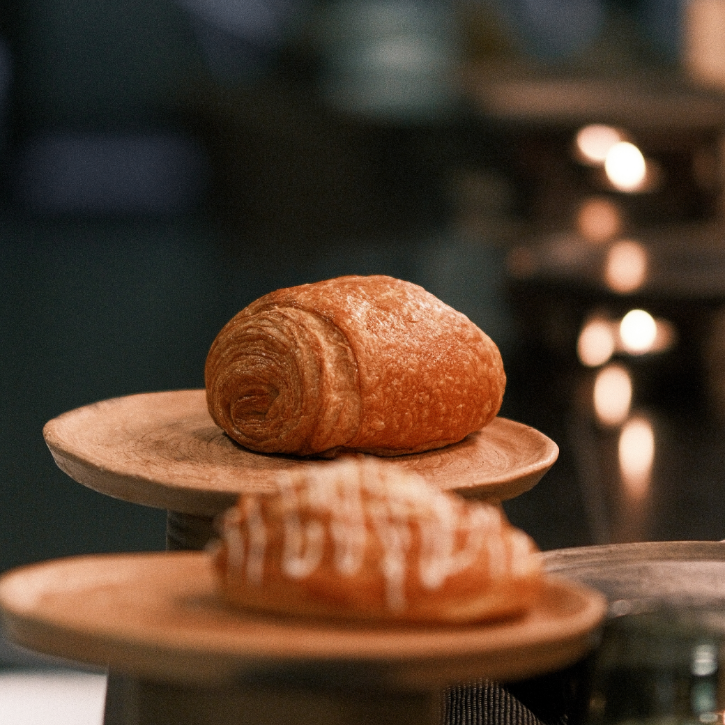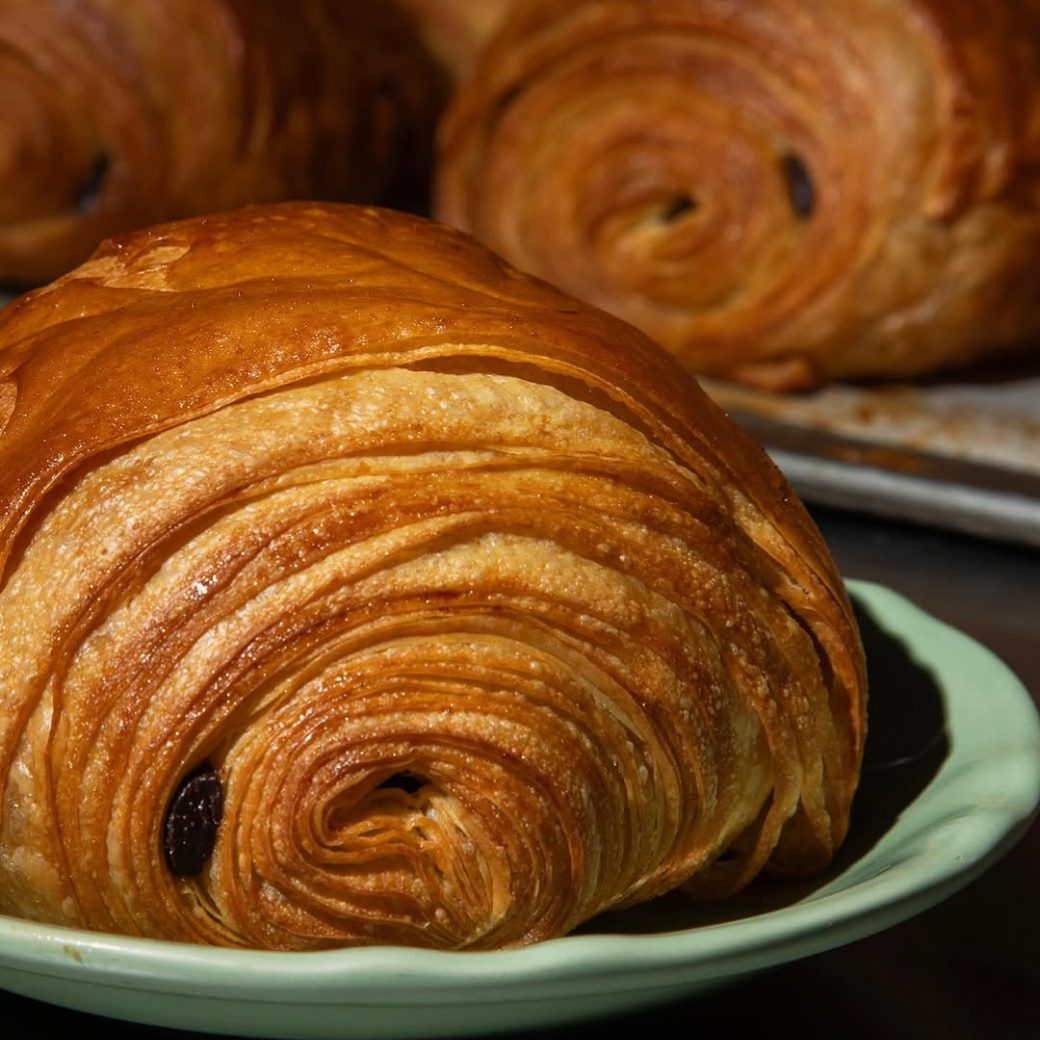 A masterclass in simplicity. A flaky, golden pastry gives way to a core of rich, dark chocolate—a decadent start to any morning.